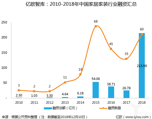 在今年11月億歐家居舉辦的“解構供應鏈”家居論壇上,就資本寒冬的話題,幾位圓桌嘉賓均表示,如果找到一個真正好的商業(yè)模式,且不斷迭代、變化,這個行業(yè)無所謂春天。億歐公司創(chuàng)始人黃淵普在2018年億歐創(chuàng)新者年會上也表示,大多數(shù)公司失敗是因為沒有做好基礎的事情,而不是因為資本寒冬。億歐智庫整理了2018年投融資情況發(fā)現(xiàn),家居家裝行業(yè)并未出現(xiàn)所謂的資本寒冬。